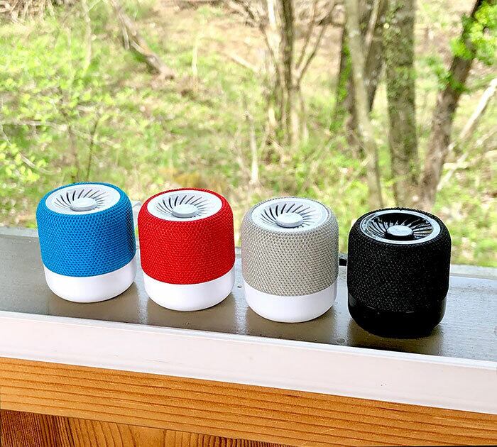直径約40mm x H約43mm ちっちゃなトゥルーワイヤレス(TWS 完全ワイヤレス)対応スピーカーです。2 台のスピーカーをペアリングすることでリッチな3D ステレオサウンドが楽しめます。全5色(オニキスブラック、ストロベリーレッド、アッシュグレー、ターコイズブルー,
